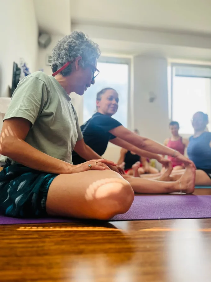 Alle Teilnehmenden brachten ihre grundlegenden Übungsutensilien mit: einen Gurt, zwei Klötze und eine Baumwolldecke, unverzichtbare Begleiter in der Iyengar-Yogapraxis.