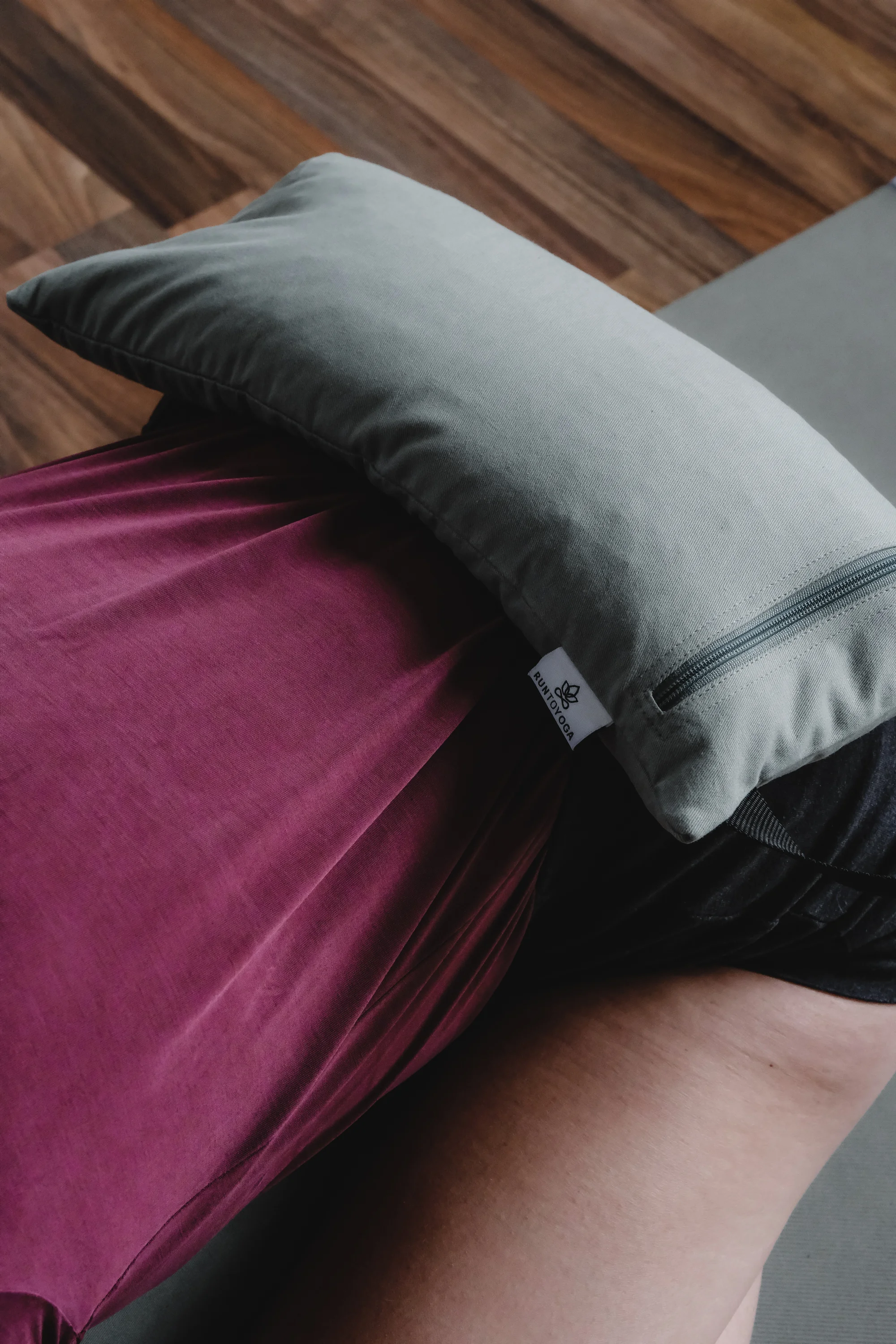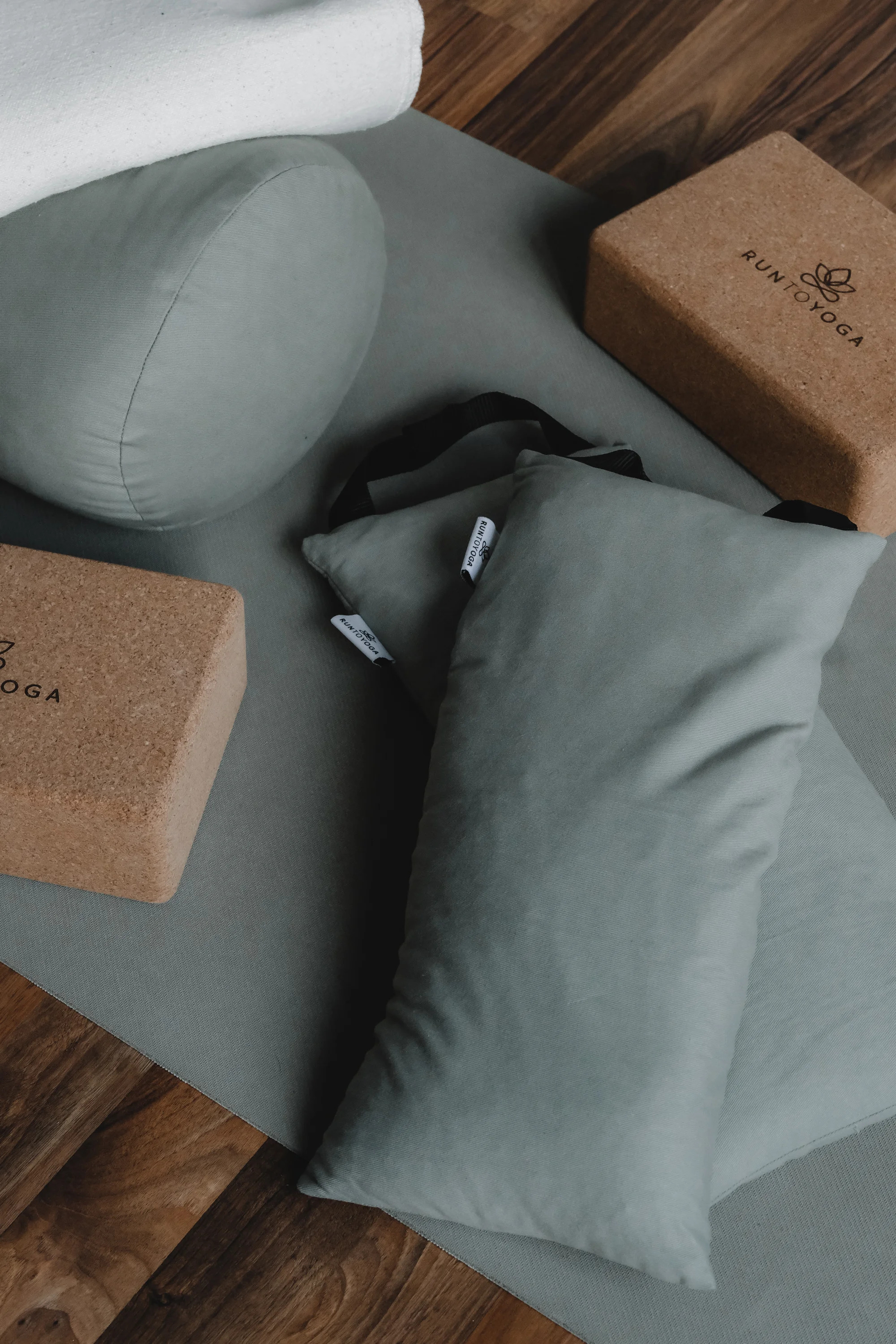 In der restorativen Praxis wird es häufig in Supta Baddha Konasana, Supta Virasana, Savasana und ähnlichen Positionen verwendet, am häufigsten auf den Oberschenkeln, Füßen, am Kreuzbein, auf Schultern oder Handflächen, wenn du mehr Ruhe im Körper möchtest. Die sanfte Beschwerung kann das Nervensystem beruhigen, einen tieferen Atem unterstützen und helfen, Spannung ohne Druck loszulassen.