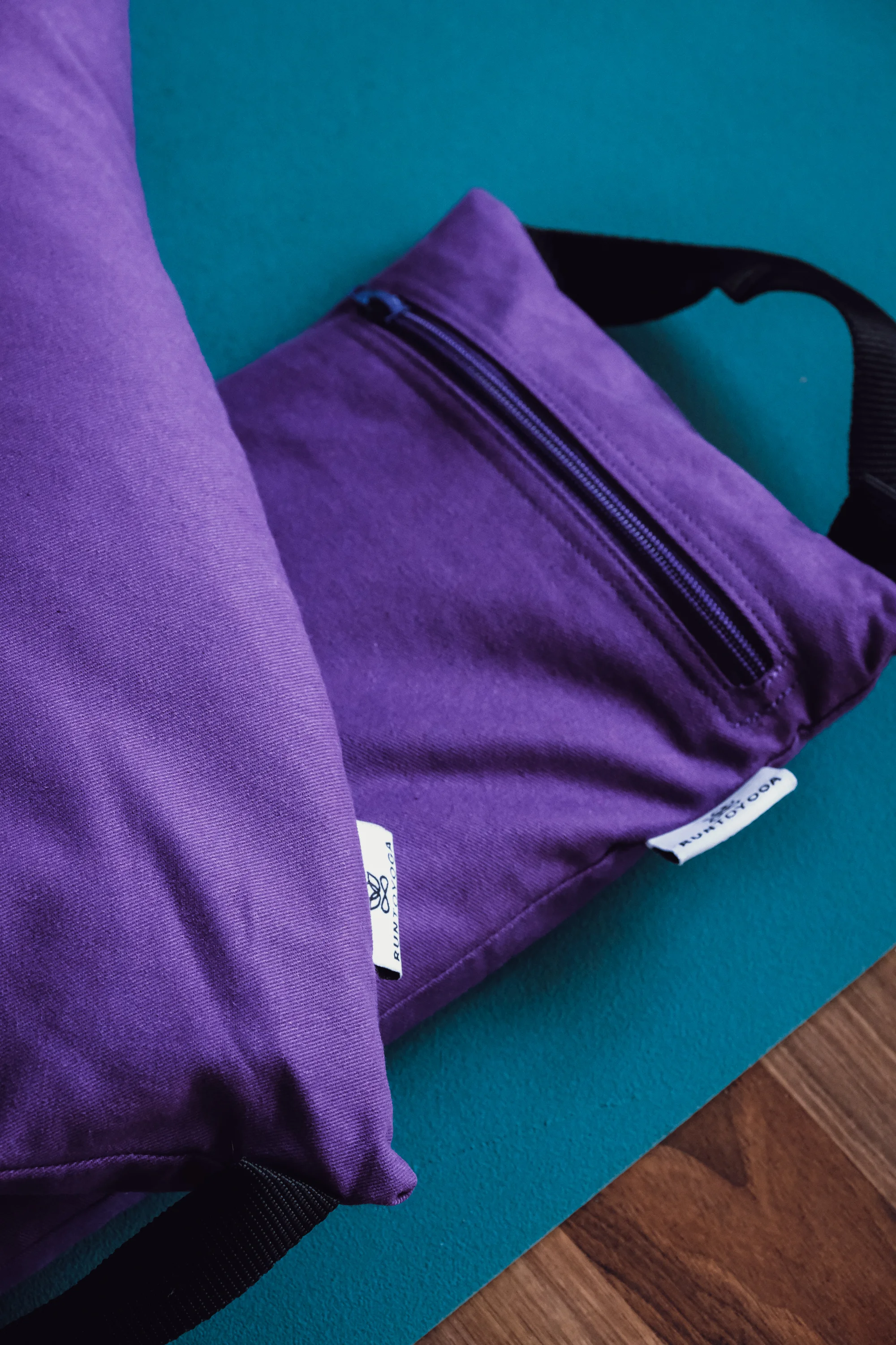 Lila Yoga Sandsack, gefüllt, für Savasana und lange, gestützte Ruhepositionen. Das sanfte Gewicht unterstützt gleichmäßige Gewichtsverteilung, ruhige Stabilität und ein klares Gefühl von Erdung, besonders am Ende der Praxis. Bezug aus 100 % Bio Baumwolle, atmungsaktiv und robust, für zu Hause oder Studio.