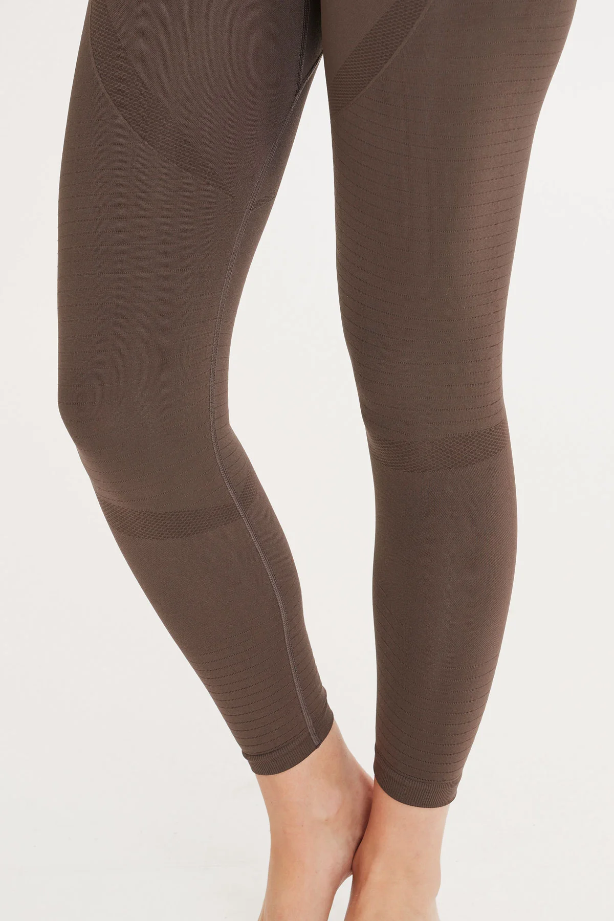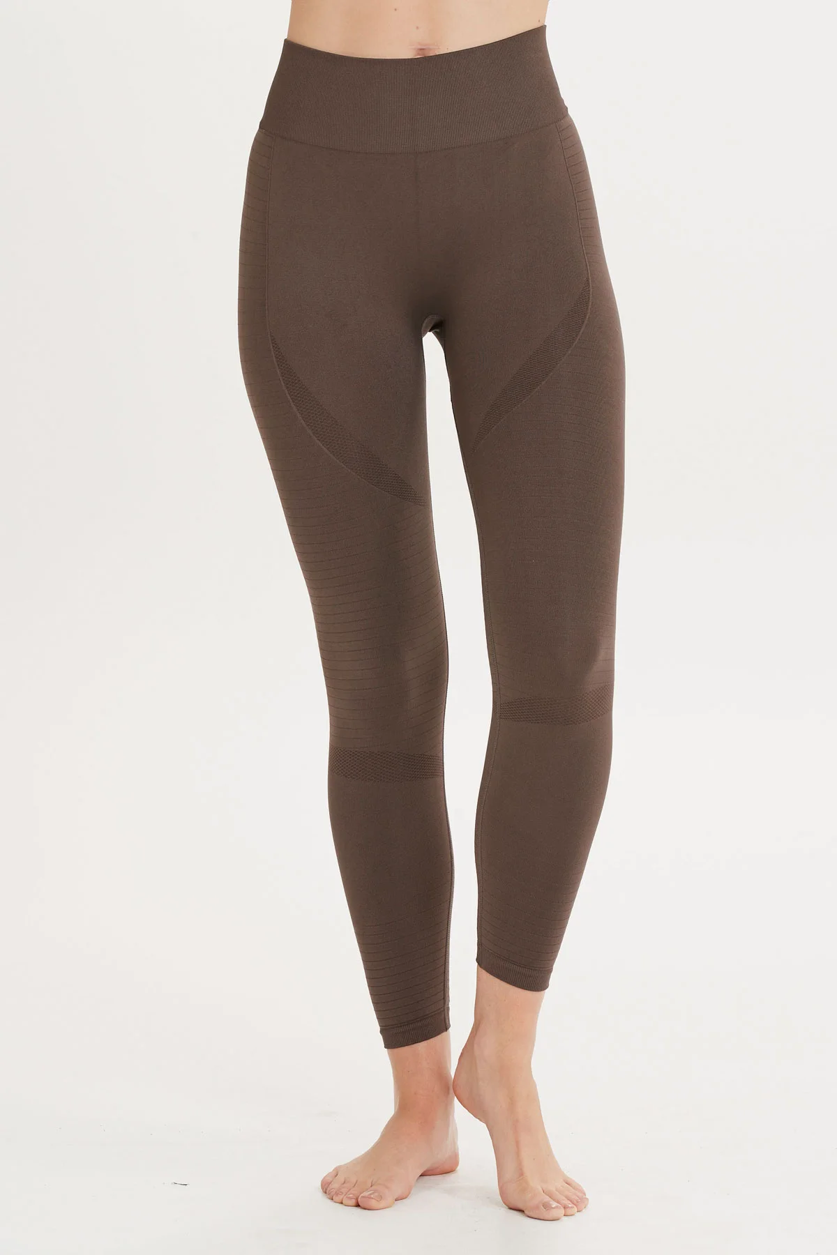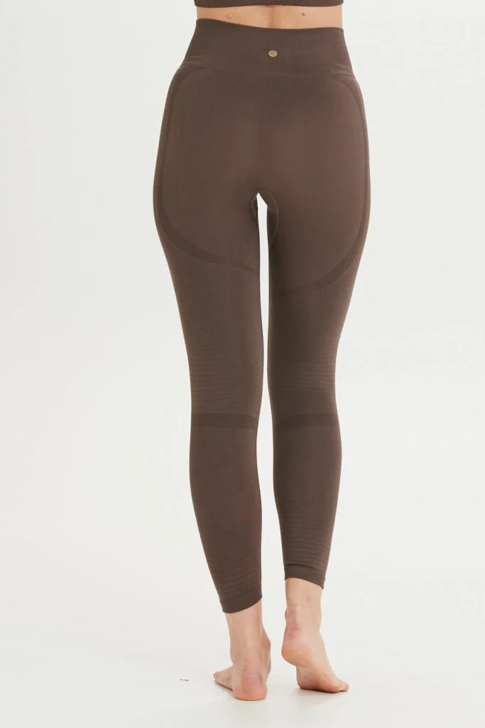 Erlebe die perfekte Balance zwischen Stil, Komfort und Funktionalität mit der nahtlosen Yuman Yoga Athlecia Nagar Leggings in einem sanften Schokoladenton. Diese Damen-Leggings bestehen aus einem besonders weichen und elastischen Material, das eine optimale Passform bietet – beim Yoga, Workout oder entspannten Alltag.