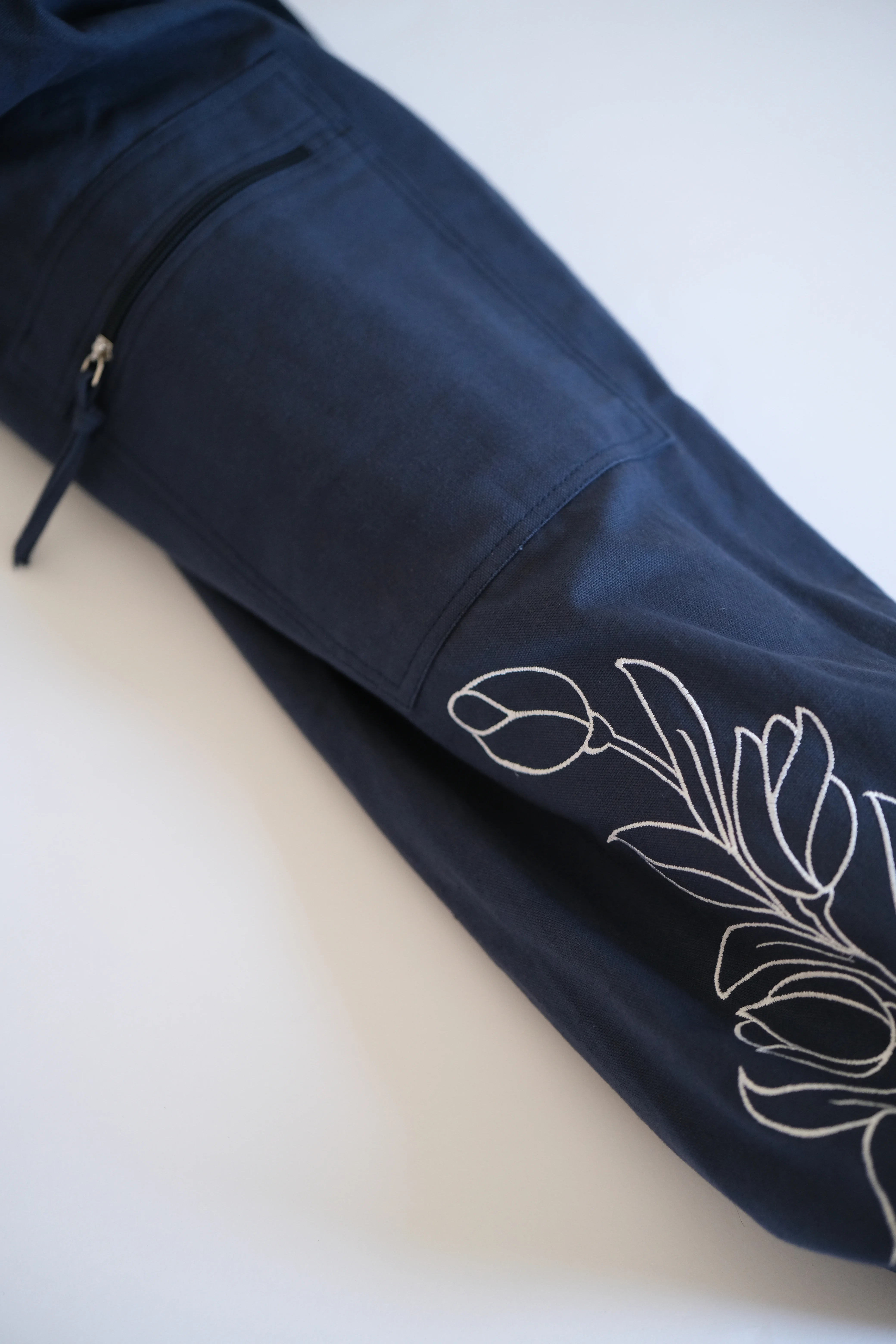 La borsa per tappetino da yoga è realizzata al 100% in cotone ed è adatta per il trasporto di tappetini da yoga di dimensioni standard. È dotata di una tracolla robusta e la tela di cotone resistente, forte e traspirante garantisce la ventilazione del tappetino da yoga e degli altri accessori all'interno della borsa.
