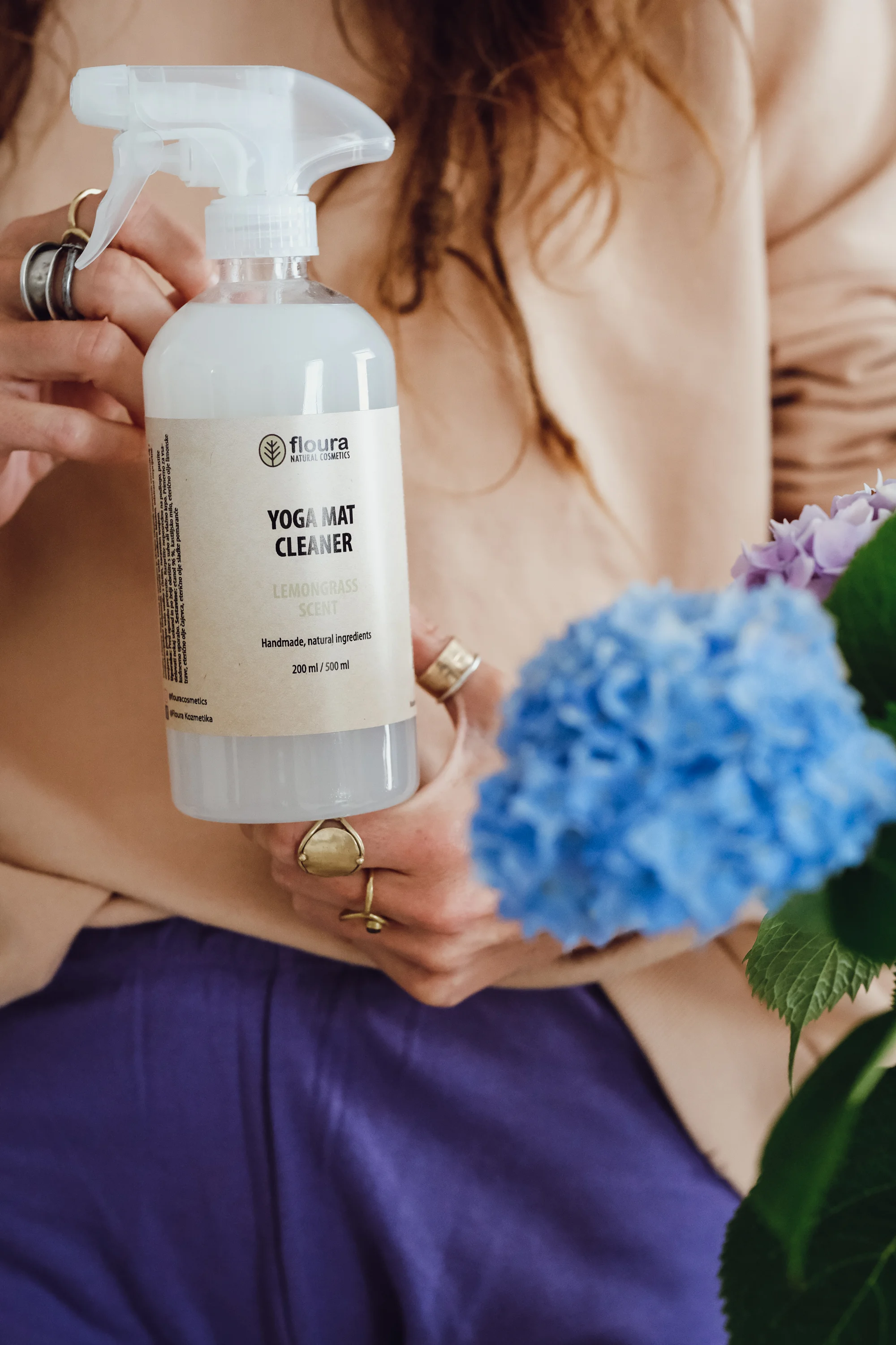 Detergente naturale per tappetini da yoga a base di sapone di Castiglia ed etanolo, arricchito con olio essenziale di citronella. Rimuove efficacemente sudore, batteri, polvere e macchie, con un effetto antibatterico, rinfrescante e aromaterapico.