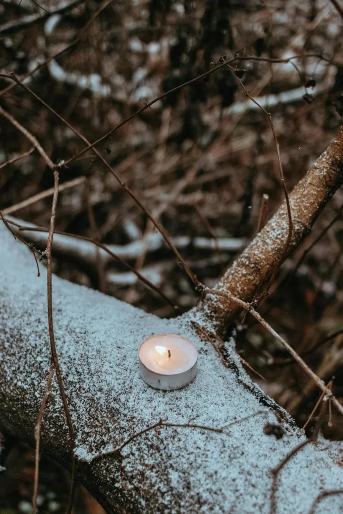 Na večer solsticija si vzemi čas, ko se dan umiri. Prižgi svečo in sedi ob njej v tišini. Opazuj plamen, njegov ritem in stabilnost.